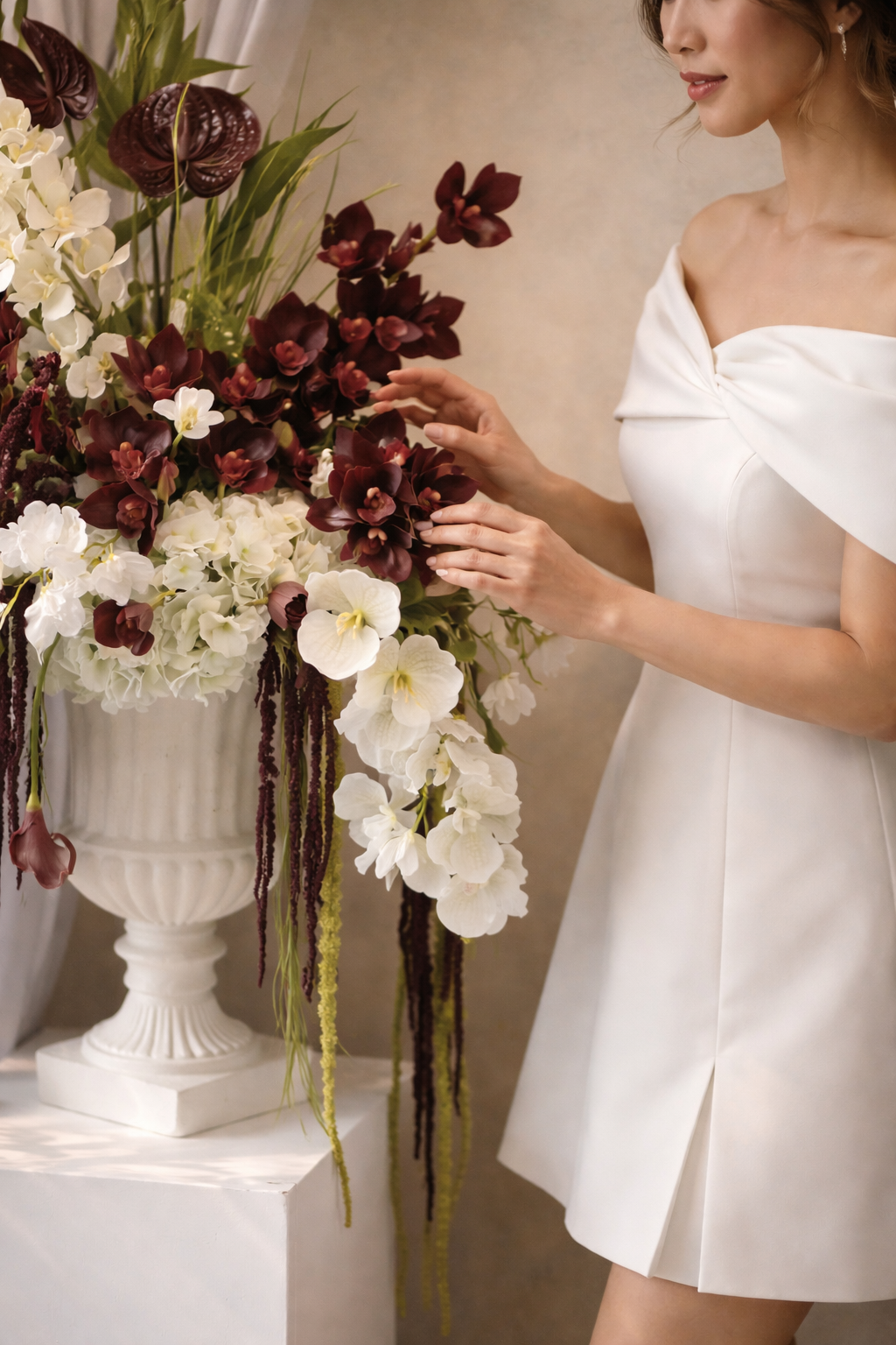 I work with both faux and fresh flowers to create designs that feel real, timeless, and full of texture. Beyond weddings, I also work with styling spaces that tell a story and linger long after the day ends.